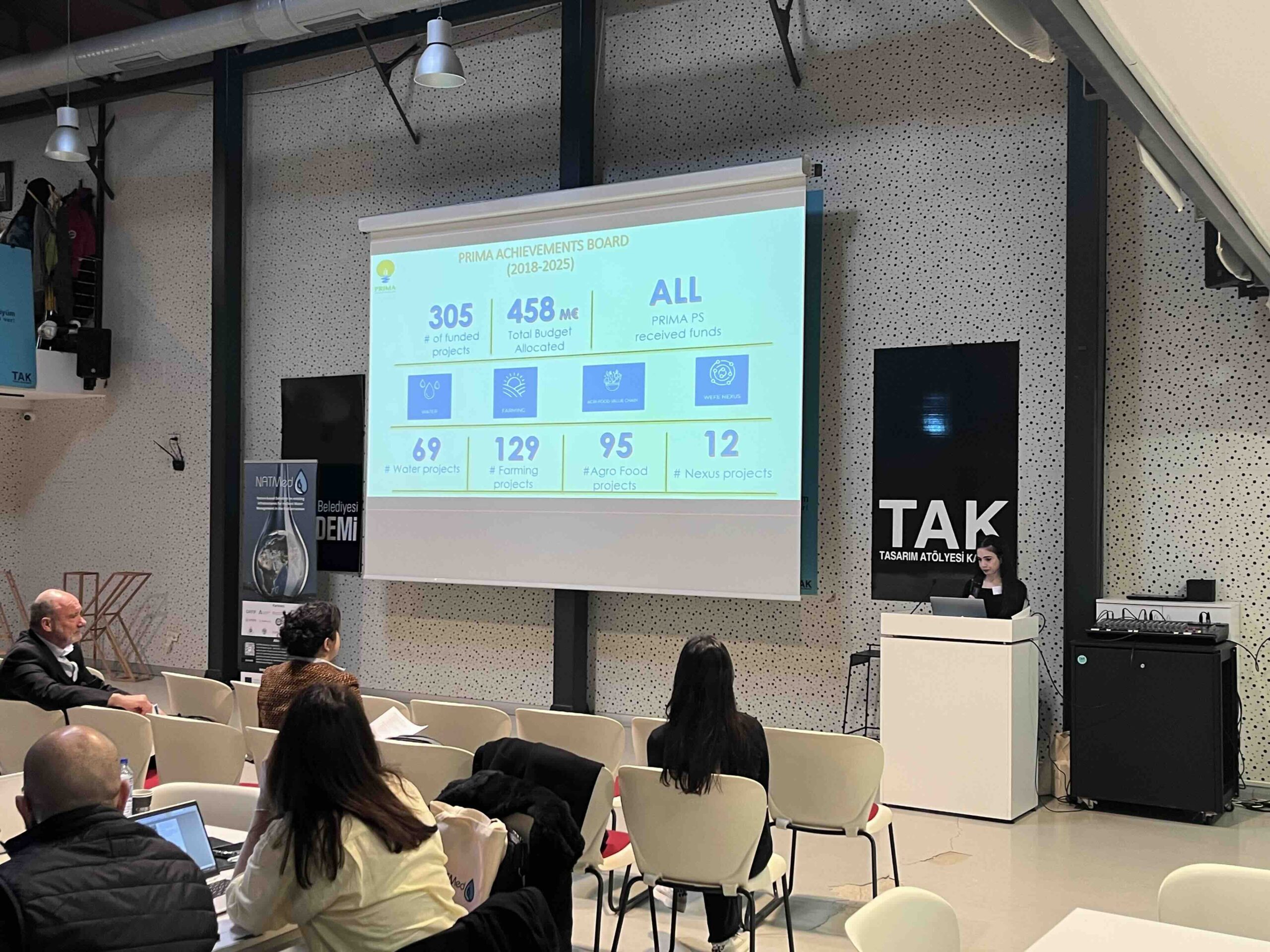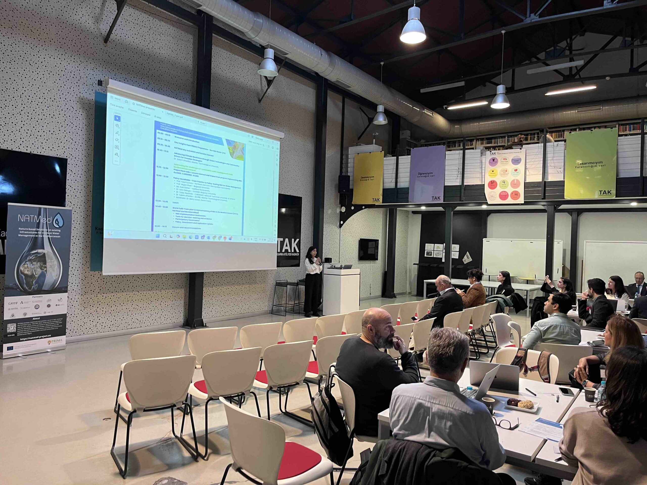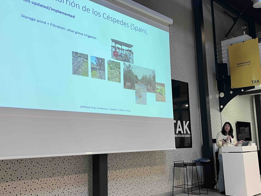 The NATMed Final Conference, “Nature-Based Solutions for Water Resilience”, took place on 12 March 2026 at TAK Kadıköy (Design Atelier Kadıköy) in Istanbul, bringing together researchers, policy makers and practitioners to discuss how Nature-based Solutions (NbS) can be integrated into existing infrastructures to strengthen water resilience in the Mediterranean region. The event presented the key results, tools and lessons learned from the NATMed project, and featured insights from the PRIMA Programme delivered by Nur Eda Demir, Project Officer at PRIMA.